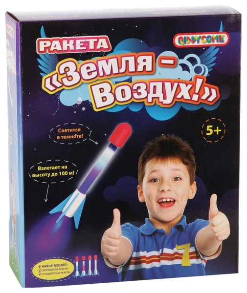 Увлекательный набор для активных игр на природе, позволяющий запустить воздушную ракету. Запуск осуществляется очень просто: достаточно прыгнуть обеими ногами на воздушный баллон, и сила сжатого воздуха отправит ракету в полет! В комплект входят 4 ракеты, две из которых светятся в темноте. Ракета может взлетать на высоту 30-40 м, при этом абсолютно безопасна при правильной эксплуатации. Море восторга вашему ребенку гарантировано!
