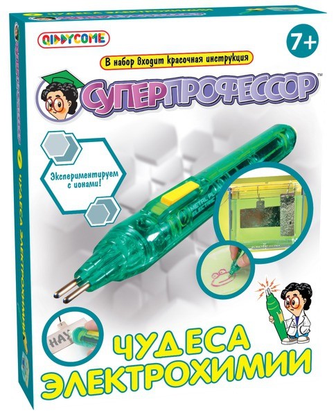 С набором Qiddycome Суперпрофессор. Чудеса электрохимии ребенок сможет изучить простые химические реакции и провести различные эксперименты. Рекомендован детям от 7 лет.