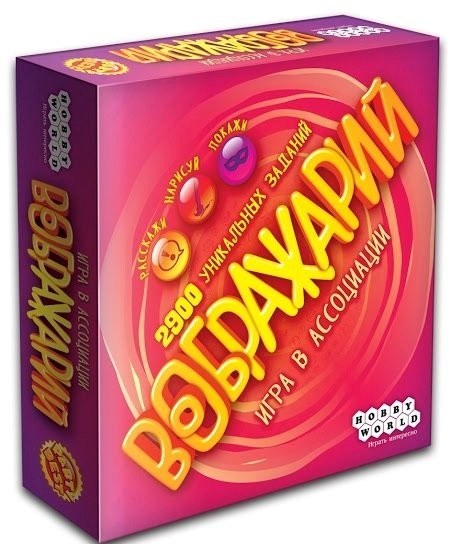 «Воображарий» - это веселая и интересная игра в «угадай что» для дружной компании. Каждый ход в этой игре выбирается новый ведущий, который должен объяснить словосочетание при помощи рассказа, рисунка или яркого представления в течение одной минуты. Игрок, отгадавший задание ведущего, и сам ведущий получают по одному победному очку.