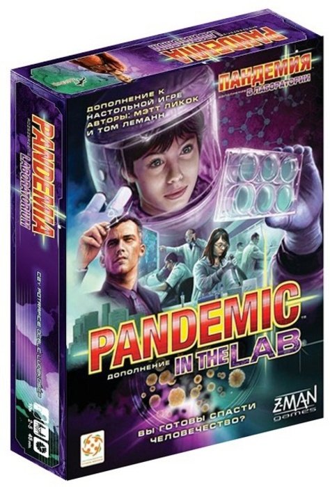 "Пандемия. В лаборатории" – дополнение к легендарной стратегии о борьбе со смертельной эпидемией "Пандемия", а также расширение к "Пандемия. На грани". В лаборатории со знаком биологической опасности найдется: 4-е новые роли (руководитель СКЗ, пилот, эпидемиолог и вирусолог), 2 карты мутаций, 3 карты событий и два варианта правил (для одного и для команды).