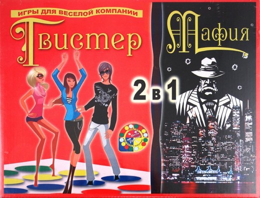 Невероятное предложение! Две увлекательнейшие игры вместе: "Твистер" - "гвоздь всех вечеринок" и "Мафия" детективно-ролевая игра, полюбившаяся игрокам всего мира! Вы можете приобрести разом эти две бешено популярные игры и не больше не переживать о том, что будут делать гости на вашем празднике или Ваша семья любым свободным днем. Здесь разом задействованы и тело и ум. В "Твистере" победа достанется только самым настойчивым и ловким, а в "Мафии" самым сметливым и хитрым! Пробуйте свои силы в двух увлекательных, потрясающих играх современности "Мафии" и "Твистере". Ведь с ними вам гарантирован взрыв азарта и масса веселья!
