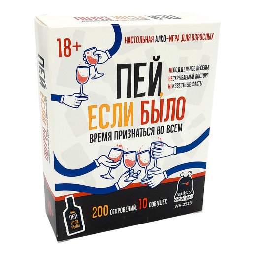 “Пей, если было!” – это забавная игра, которая позволяет игрокам насладиться вечером в компании друзей и при этом посмеяться над своими жизненными историями. Правила игры “пей, если было” очень просты. Игроки садятся в круг и каждый берет по очереди карту из колоды. На карте написано событие, которое могло произойти в жизни любого человека. Если у игрока действительно было такое событие, то он должен сделать небольшой глоток из своего стакана. Эта настолка позволяет узнать друг друга по лучше, узнать интересные факты из жизни и просто хорошо провести время в компании друзей.