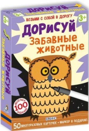 Дорисуй различных животных или их недостающие части! В чем особенность игры: - В комплекте есть маркер на водной основе, которым можно писать на карточках, а потом с лёгкостью стирать его. Карточки сделаны из картона и покрыты защитной плёнкой. Каждая карточка - двусторонняя. Ребенку несомненно понравится такое развлечение, ему придется пофантазировать и представлять продолжение картинок, а потом уже дорисовывать их. Ну а если ему сначала будет трудно вы можете ему немножко помочь и поучаствовать в его творческом процессе.