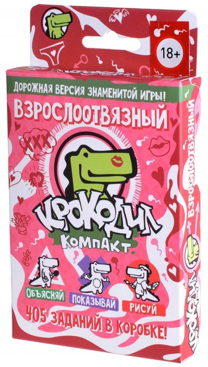 Настольная игра Крокодил ВзрослоОтвязный – весёлая, шумная и общительная игра для любой компании. Наконец-то смешных, слишком взрослых, жутковатых и угарных слов набралось на целый выпуск карточного Крокодила. Некоторые из них смешные даже не сами по себе, а тем, как их показывают в режиме пантомимы. Большой куш, например, смутил не одну девушку, а некоторых парней прямо-таки испугал. Ладно, если объяснять его словами, а не жестами, легче всё равно не станет, но отгадают быстрее. А если рисовать, отгадают ещё быстрее, поэтому большой куш не стоит в заданиях на рисование.