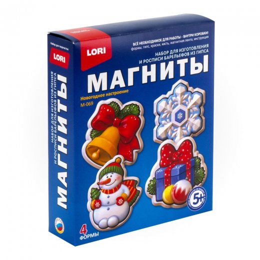Набор для творчества Магниты Новогоднее настроение – это прекрасный подарок для творческого развития ребенка. Набор производителя LORI предназначен для изготовления и росписи барельефов. Ребенок имеет возможность создания оригинальных магнитов своими руками. Ребенку необходимо залить гипсовую основу в специальные формы. Когда игрушки застынут, детям необходимо расписать их при помощи красок, входящих в комплект. Готовые фигурки на магнитах можно будет разместить на холодильнике и любой металлической поверхности.