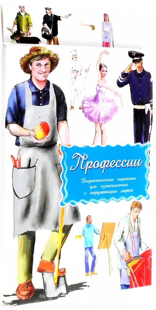В комплекте карточки, каждая из которых содержит интересную познавательную информацию об изображенном на ней предмете. Благодаря содержательным текстам на самые разнообразные темы, комплекты могут служить мини энциклопедией для ребенка. Дидактические карточки "Профессии". Это наглядное пособие с крупными яркими картинками, познакомит детей с некоторыми самыми известными профессиями: продавец, журналист, садовод, строитель, художник, учитель, фермер, водитель такси, инспектор ДПС, портной, менеджер, врач, парикмахер, пожарный, повар и балерина. На одной стороне каждой карточки изображен представитель данной профессии одетый в соответствующую одежду или с характерными атрибутами, а на обратной стороне дано ее описание: происхождение названия, суть выполняемой работы и необходимые для нее качества, история.