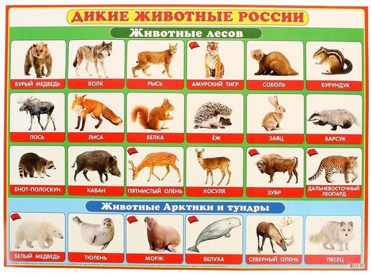Купить плакат Дикие животные России в Новосибирске Вы можете в магазине настольных и развивающих игр «Игры Почемучек».