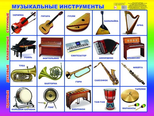 Купить Плакат Музыкальные инструменты в Новосибирске Вы можете в магазине развивающих и настольных игр "Игры Почемучек"