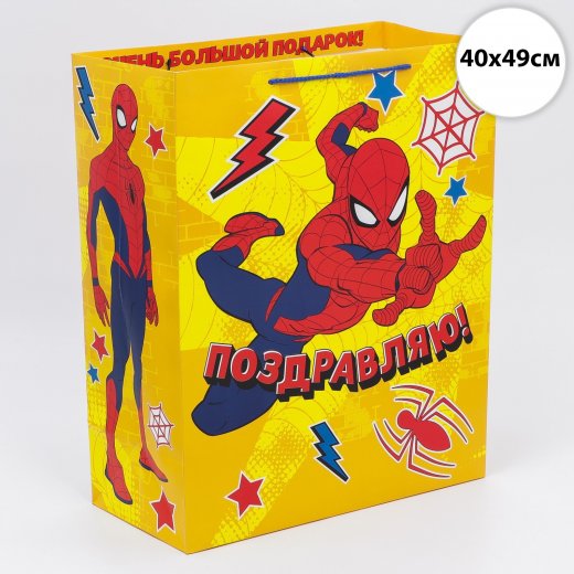 - Пакет подарочный Поздравляю Человек-паук, 40 х49 х19 см