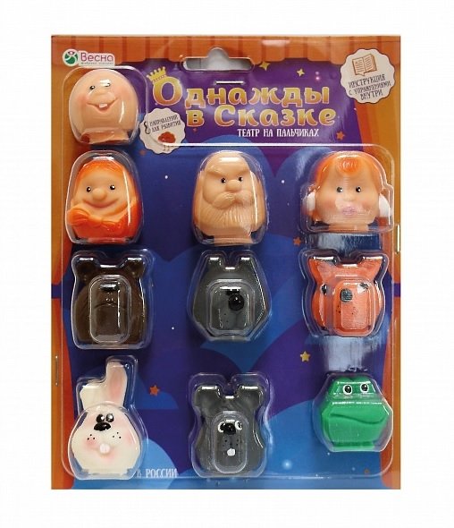 Пальчиковый театр Однажды в сказке может стать замечательным приобретением для девочек и мальчиков. С этим театром ваш малыш попадёт в волшебный мир, где ожившие герои сказок расскажут ему о своих приключениях. Набор состоит из фигурок надеваемых на пальцы руки взрослого или ребенка. Уникальность этого театра на пальчиках в том, что к нему прилагается интересная и увлекательная инструкция с упражнениями для развития ребёнка, готовыми занятиями, методическими рекомендациями, которые помогут родителям и воспитателям организовать игру с детьми.