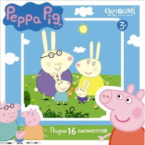 Пазл "Peppa Pig 16 элементов" поможет без труда вашему малышу создать настоящий сюжет из одноименного мультфильма. У Свинки Пеппы и ее семьи много друзей, одни из них - семья кроликов. Ребекка и Ричард - это кролики-детки, с которыми любят играть Пеппа и Джордж. Мисс Кролик и Мистер Кролик - очень важные персоны в мультяшном городке, ведь они работают в магазинах, умеют водить автобусы и мастерски проводят экскурсии для Пеппы и ее друзей. На картинке, изображенной на пазле, как раз запечатлено семейство Кроликов.