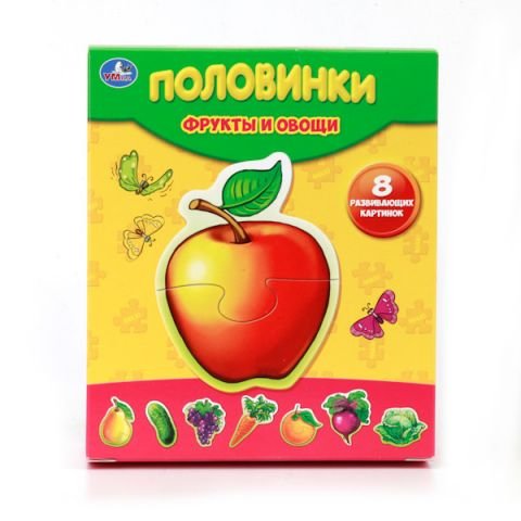 Половинки Фрукты и овощи–это красочный пазл, который надолго увлечет вашего ребенка.