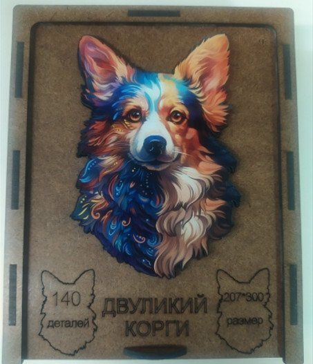 Купить Фигурный деревянный пазл Двуликий корги 140 дет в Новосибирске Вы можете в магазине настольных и развивающих игр "Игры Почемучек"