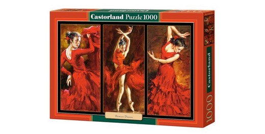 Пазлы "Танцы 1000 дет" - триптих с прекрасной танцовщицей в красном платье, танцующей фламенко. Эту картину можно собрать из 1000 элементов этого пазла. Результат, собранный за несколько часов, поразит и порадует всех. Собранный пазл можно склеить, вставить в рамку и украсить ей интерьер комнаты (рамка и клей не входят в комплект). Высокое качество печати и материалов отличает все пазлы Castorland. Детали не деформируются и не ломаются при сборке, и каждая из них подходит только на свое место, идеально соединяясь с соседними.