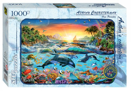 Пазл –это отличный вариант для веселого времяпрепровождения с семьей. Пазл состоит из 1000 элементов. Собрав все детали воедино, вы получите великолепную картинку "Касатки" известного британского художника и иллюстратора Адриана Честермана. Картинку можно надежно закрепить и затем повесить на стену, в качестве декора.