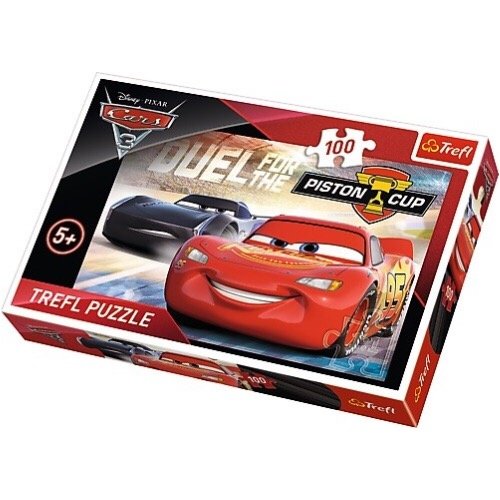 Пазлы "Тачки Молния и Метр 100 дет" позволяет собрать эффектную картинку по мотивам диснеевского мультфильма Cars 3. На картинке изображены веселый McQUEEN и его грозный соперник Jackson Stonm во время соревнования за кубок Поршня. Вместе с любимыми героями ребенок получит заряд бодрости и новых впечатлений.