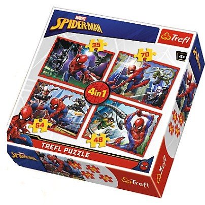Пазлы Паутина Человека-паука – это набор деталей разного размера: от 35 очень больших до 70 более мелких. Пусть ребенок учится собирать изображения из частей! Такой для поклонников супергероя настоящая находка. Здесь сразу 4 истории с изображением любимого персонажа. Элементы пазла отличаются друг от друга не только картинками, но и размером деталей. С комплектом удобно учиться данному занятию, а также повышать свой уровень мастерства. Можно начать с самого простого уровня: собрать рисунок из 35 больших элементов. Постепенно предлагайте ребенку более сложные варианты – картинки из 48, 54 и 70 деталей.