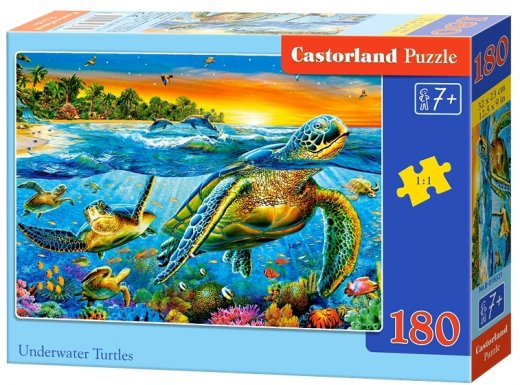 Пазлы Морские черепахи – это прекрасный подарок для юных непосед, который несомненно им понравится. Детям предстоит собрать яркую и красочную картину с изображением морских черепах из 180 картонных элементов, для этого нужно правильно скрепить между собой элементы пазла. Полученное изображение наверняка порадует детей - выглядит оно очень красочно и натурально.