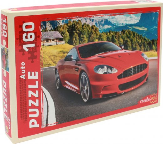 - Пазлы 160 дет Красный автомобиль Рыжий кот