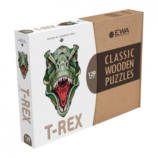 Купить Деревянный пазл головоломка EWA Динозавр T-REX XL 129 дет в Новосибирске Вы можете в магазине развивающих и настольных игр "Игры Почемучек".