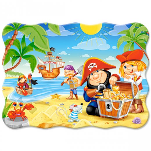 Castorland прекрасно подойдет, чтобы познакомить малыша с этим увлекательным видом головоломки. Составление крупных элементов не станет слишком сложной задачей для малыша, а яркое изображение забавных пиратов в поисках сокровищ непременно понравится ребенку.