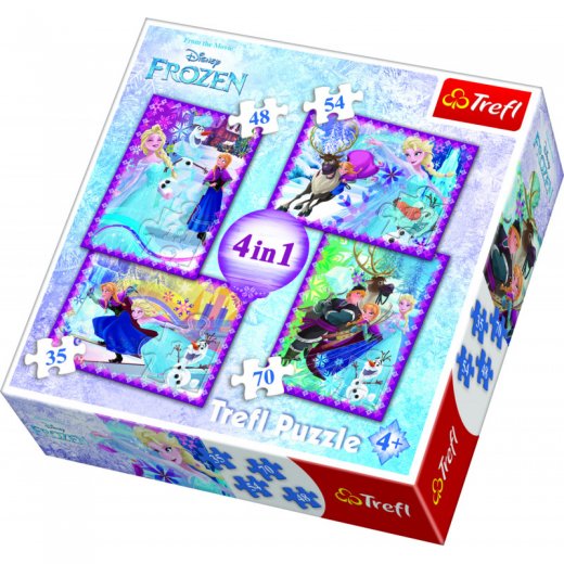 Набор "Холодное сердце: 4 в 1" от бренда Trefl станет полезным и увлекательным подарком для маленьких любителей головоломок. В таком наборе вы найдете 4 пазла, на которых изображены диснеевские мультипликационные принцессы. С таким набором можно собрать не один, а целых четыре пазла, что позволит вашему ребенку начать коллекцию тематических картинок, на которых нарисованы диснеевские герои.