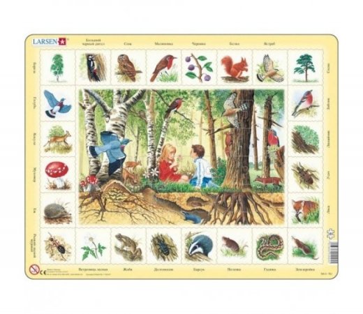 Пазл "Лес" от бренда Larsen хороший подарок для ребенка, с которым можно не только хорошо провести время, но и получить знания о лесных представителях флоры и фауны. Пазл состоит из 48 элементов, которые собираются на подложке. По краям подложки имеются иллюстрации с названиями животных, птиц, растений и насекомых.