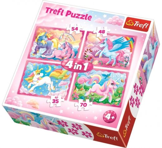 - Пазлы 4в1 Волшебный мир единорогов 35 ,48 ,54,70 дет