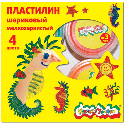 В комплект входит пластилин четырех оттенков, каждый из которых упакован в отдельную коробочку. С шариковым пластилином очень интересно играть и создавать что-то новое, именно такой вид пластилина разработан для самых маленьких скульпторов, он является экологически безопасным для детей.