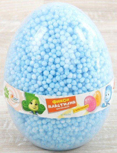 Шариковый пластилин Фиксики с блёстками в яйце – это необычный пластилин состоит из маленьких шариков, напоминающих искрящиеся бусинки, соединенных тончайшими клеевыми нитями… Шариковый пластилин очень легкий, воздушный и совсем не липнет к рукам. Цвета легко смешиваются друг с другом, образуя разноцветную шариковую массу. Готовые поделки из шарикового пластилина высыхают на воздухе в течение 24 часов. Пластилин не высыхает на воздухе, поэтому его можно использовать многократно.