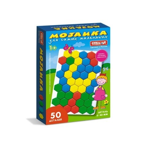 Мозаика d40mm для самых маленьких 50 деталей - это увлекательная развивающая игра предназначена для детей от 1 года. Набор состоит из 50 фишек 4 цветов – зеленого, синего, желтого и красного. Основой для составления рисунков являются своеобразные «соты» - поле размером 330 на 230 мм, на выступы которого надо просто надевать фишки, составляя яркие композиции. Диаметр каждой фишки составляет 40 мм - это оптимальный размер для маленьких ручек. Все детали выполнены из высококачественных материалов, безопасных для ребенка. На коробке имеются примеры изображений, которые можно собрать из деталей мозаики. Рисунки, представленные на упаковке, являются только примером, так как универсальная мозаика раскрывает перед ребенком неограниченные возможности моделирования и создание множества своих собственных рисунков.