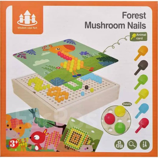 В набор входят: деревянный контейнер, рамка с ячейками, картинки 15 шт, цветные грибочки 240 шт.