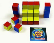 "Кубики для всех-Загадка"- это первые занимательные логические игры для детей от 2,5-3 лет и старше. Самое сложное соединение отдельных кубиков в игре №5 Загадка - состоит из семи неправильных (отличных от параллелепипедов) трёхмерных фигур, составленных из трёх или четырёх одинаковых кубиков, соединённых гранями. Общее число кубиков в головоломке двадцать семь. Замечательно то, что из элементов каждого набора можно сложить куб 3х3х3 и много тысяч красивых фигур. Самым маленьким можно предложить просто пересчитать кубики, назвать по цвету, придумать имя каждому элементу (например, Зиг-заг, Уголок и т.д.) и попробовать составить какую-нибудь фигурку из двух элементов. Научившись складывать простенькие фигурки можно приступить и к более сложным. В инструкции предлагается 73 варианта складывания фигур и в двух видах: раскрашенные и черно-белые. Раскрашенные будут попроще, так как видно какие элементы задействованы.