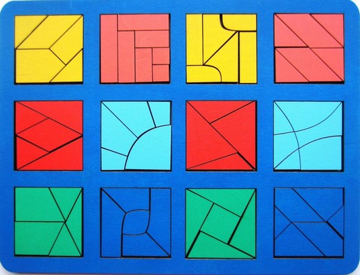 В набор входит: планшет с выемками для квадратов (31,5*24см) и 12 разрезных квадратов (6*6см)