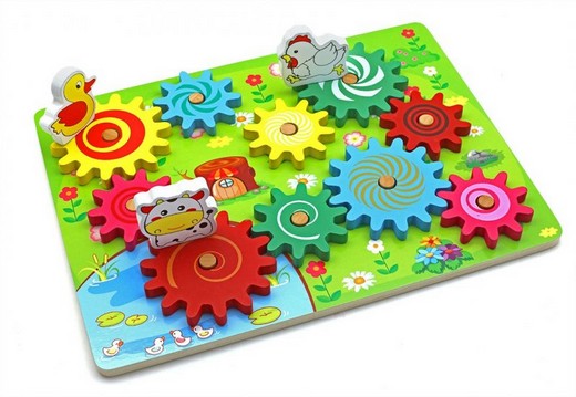 Купить "Шестерёнки на полянке деревянные" в Новосибирске Вы можете в магазине развивающих и настольных игр "Игры Почемучек".