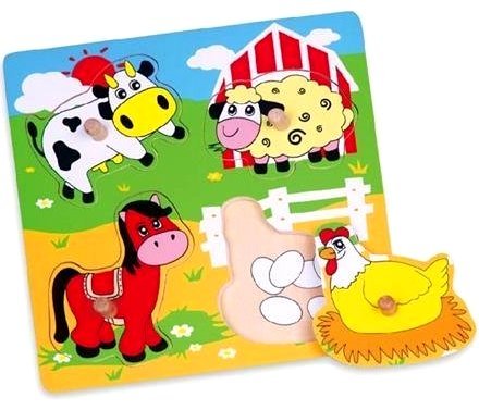 Крупная картинка и объемные детали пазла адаптированы специально для маленьких детских ручек, для удобства фигурки снабжены деревянными рукоятками, которые легко удерживать маленькими ручками.