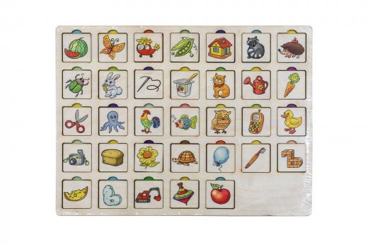 Секретики "Алфавит" - представляет собой плашку, в которой под каждой картинкой скрывается буква, на которую начинается нарисованный предмет, а дальше скрывается название предмета.