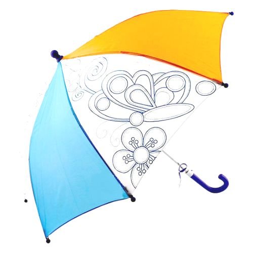 У этого зонтика 8 секторов: половина из них разноцветные, а другая половина – белые, на которые нанесены трафареты для раскрашивания. Такой набор не останется без внимания у юной создательницы и порадует ее, потому что можно заняться увлекательным процессом и в дальнейшем носить зонтик, радуясь результатом своей работы. Специальные краски не стекают, они ровно и без труда ложатся и не доставляют неудобства в работе.