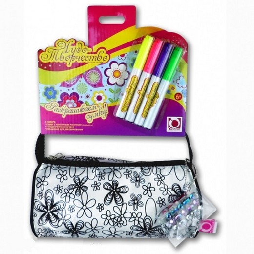 Набор стимулирует развитие фантазии и воображения, развивает точность, аккуратность и чувство стиля. Состав набора: сумочка, фломастеры. Размер: 20см на 9 см. Рекомендуемый возраст: от 5-ти лет.