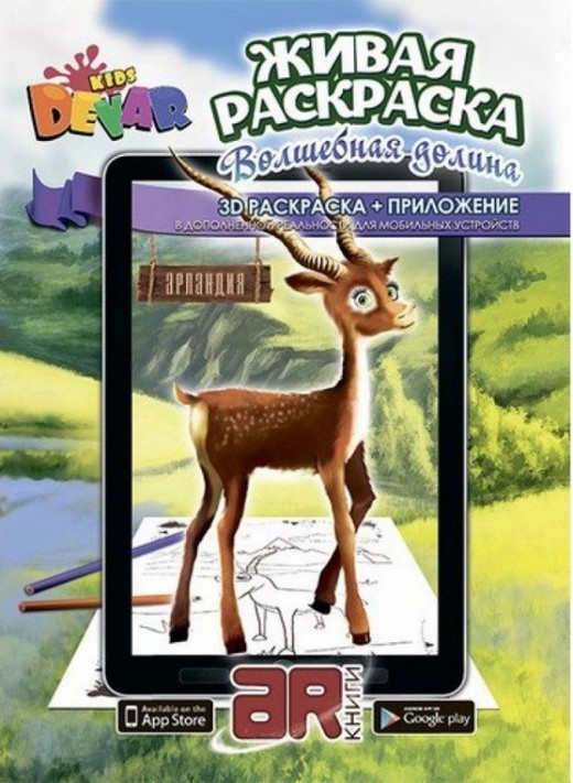 Живая раскраска "Волшебная долина" от компании Devar Kids представляет собой бумажное изделие с черно-белыми картинками, которые необходимо раскрасить. Рисунки раскраски изображают лесных зверей, оживающих благодаря интересному мобильному приложению, которое необходимо будет скачать. Благодаря раскрашиванию, у ребенка будут развиваться внимательность и аккуратность.