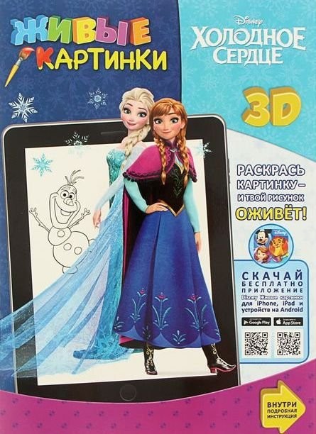 3D раскраска "Живые картинки: "Холодное сердце" от издательства "Эгмонт Россия" представляет собой книжку новой разработки, в которой нужно использовать гаджет, например планшет. Для этого необходимо скачать приложение Color and Play от Disney.