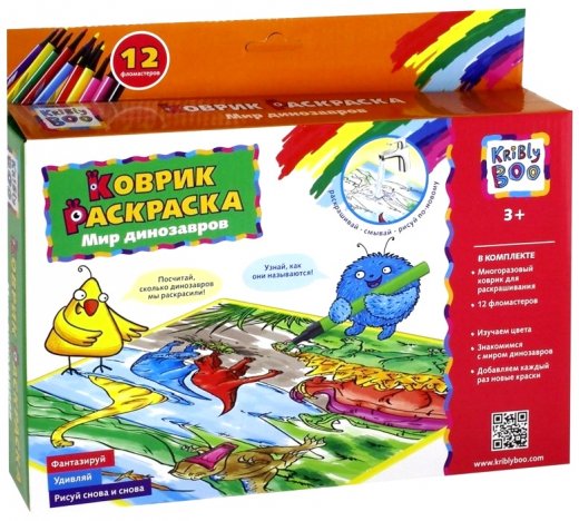 Коврик Раскраска Мир динозавров "Дино-мир" от российской компании Kribly Boo поможет ребенку проявить фантазию и творческие способности. В комплект входят коврик для раскрашивания и фломастеры самых ярких и насыщенных цветов. Раскрашивая картинку, ребенок сможет самостоятельно создать свой собственный уникальный и неповторимый мир динозавров.