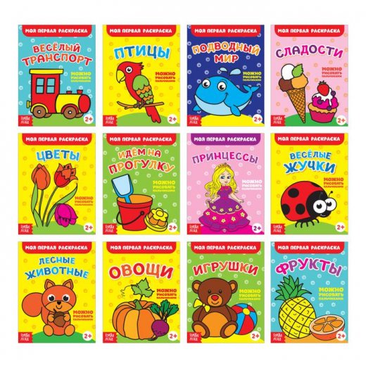 Купить набор "Мои первые раскраски 12 шт" в Новосибирске Вы можете в магазине развивающих и настольных игр "Игры Почемучек".