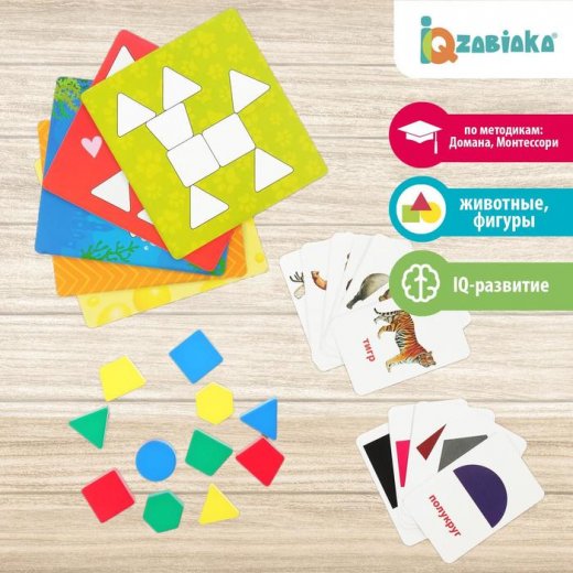 Изучайте формы и цвета с развивающим набором «Гений с пелёнок»! В наборе вы найдёте разноцветные фигурки и карточки, на которых нужно составлять животных с помощью фигурок. Просите малыша самого придумать разные фигурки или даже сюжеты, складывая их из картинок.