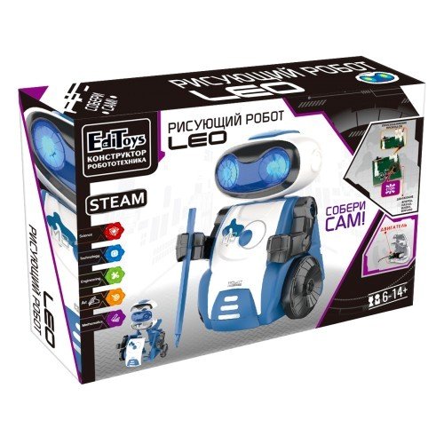 EdiToys Конструктор Робототехника Рисующий робот LEO (механическое программирование) - это набор, который позволит ребенку собрать своего программируемого робота – LEO! После самостоятельной сборки робота из деталей ребенок получит функционального робота с механическим программированием! Человечек двигается вперед, назад, вправо и влево. Чтобы его запрограммировать, нужно нажать кнопки на спине. А руки специальной формы позволяют ему крепко держать маркер или карандаш, чтобы рисовать!