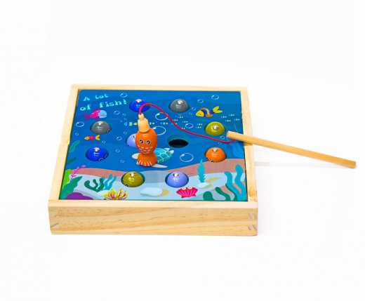 Игра выполнена из дерева, что делает её абсолютно безопасной и прочной для долговременного использования детками. Игра представляет из себя рыбалку 2 в 1. С помощью магнитной удочки цепляем рыбок сначала в объёмной основе, а после можем играть с кем-нибудь в настольную игру, где один из игроков переворачивает карточку и тянет рыбку. Игра станет прекрасным счётным материалом и материалом для игры в парочки, чтобы находить пару по цвету для объёмных рыбок и учиться отличать разных плоских рыбок.