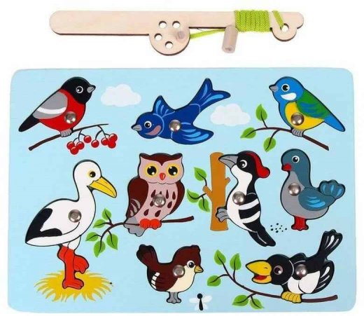 Птички – магнитная рыбалка, рамка-вкладыш, расписанная нашими художниками, это не печать, не наклеенная бумага, качественные детали не потеряют форму и цвет во время игры.