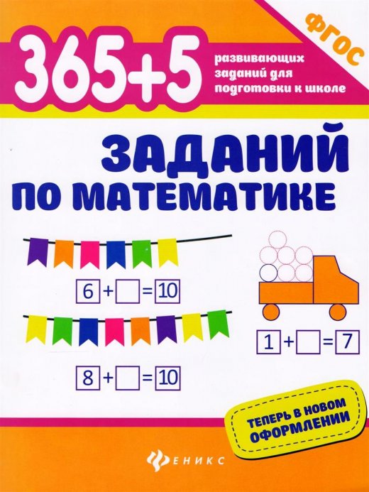 Книга 365+5 заданий по математике – выполнена в виде рабочей тетради и предназначена для знакомства детей дошкольного возраста с арифметическими действиями «плюс» и «минус», понятиями «множество, состав числа, прямой и обратный счёт, единицы и десятки, равенства и неравенства». Решая первые математические задачки, ребёнок также развивает любознательность, внимание, логику, память, тренирует моторику руки.
