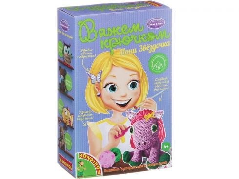 В результате девочки смогут связать себе забавного друга – Пони Звездочку. Придется приложить немало трудолюбия и внимательности, чтобы вязаная игрушка получилась красивой и аккуратной! Но инструкция к набору с подробной схемой значительно облегчит работу, а также научит основам вязания. Вязание крючком – это интересное и полезное хобби, которое обязательно пригодится в жизни каждой маленькой хозяйке!