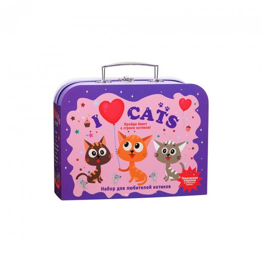 В большом чемоданчике — игровой набор с квестом по кошачьему царству. Чтобы помочь котикам и вернуть им игрушки, нужно пройти всю карту волшебной страны. Дети создадут необычные поделки, сошьют мягкую игрушку, найдут клад, сделают красивое украшение и оформят праздничные открытки. Скорее отправляйтесь в путь, выполните все задания и познакомьтесь с пушистыми жителями чудесной страны!